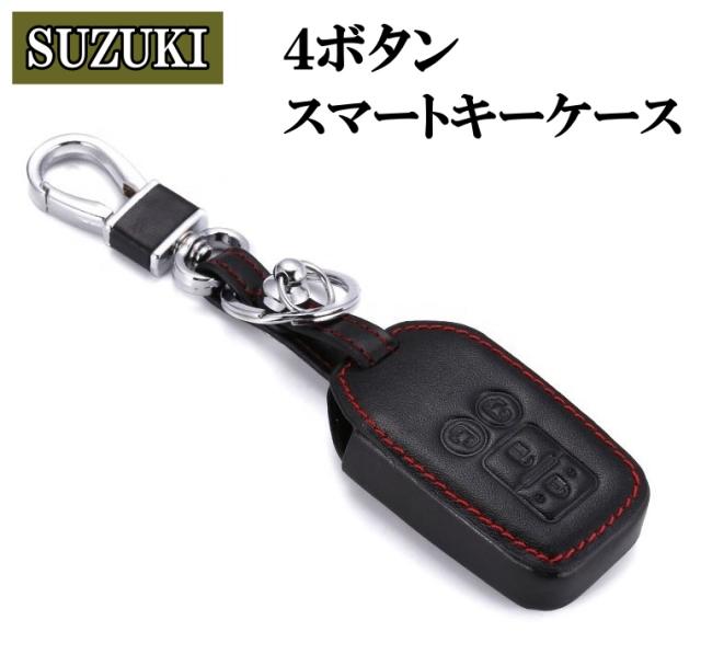 スズキ マツダ キーカバー キーケース 革 レザー 4ボタン SUZUKI スペーシア ソリオ バンディット フレアワゴン スマートキー ケース