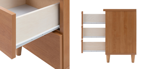 お部屋に温かな雰囲気と癒しを与えてくれる北欧モダンなチェストです。リビングや寝室に置いてもその場にすっと馴染む上品な木目がお洒落です。造りにもこだわり、ひとつひとつ丁寧に仕上げた国産の完成品です。