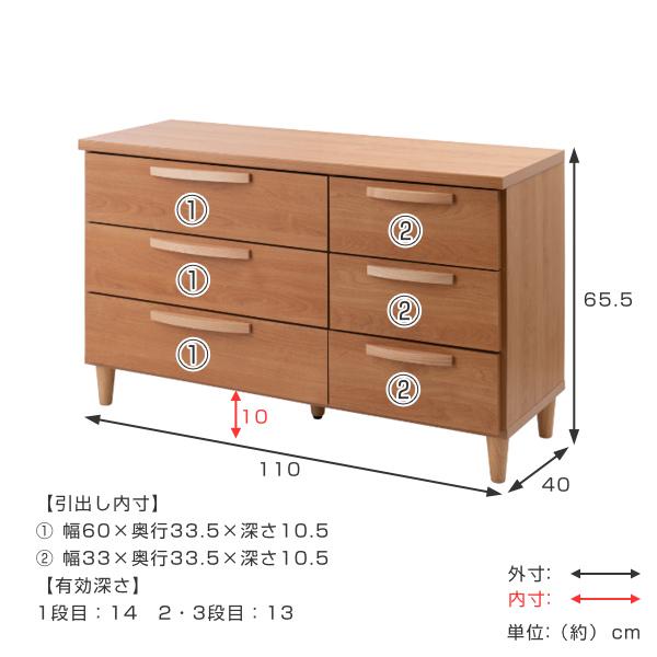 ローチェスト 3段6杯 北欧モダン 天然木取っ手 日本製 幅110m ( 収納 リビングチェスト たんす リビング収納 北欧 完成品 収納棚 リビングボード 国産 木目 ブラウン ナチュラル チェストタンス 完成品)