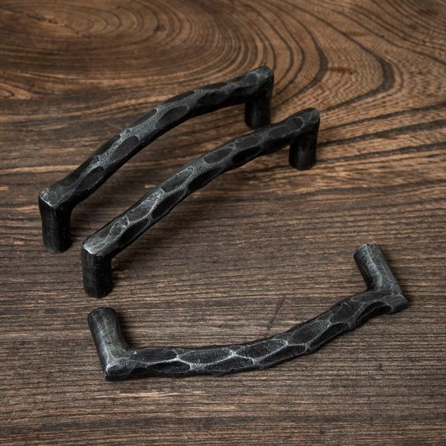 槌目仕上げ アイアンドアハンドル ヴィンテージ調 幅12.5cm / 取っ手 プルノブ DIY インテリア アンティーク調 ドアノブ インド アジア エスニック 雑貨