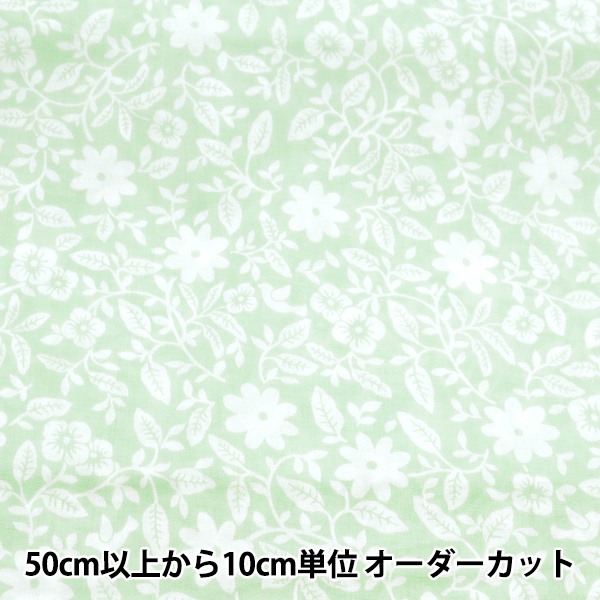 【数量5から】 生地 『60ローン 抗菌防臭 プラント&バード ライトミント YK-PLBI-A』