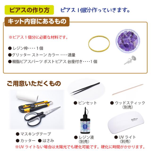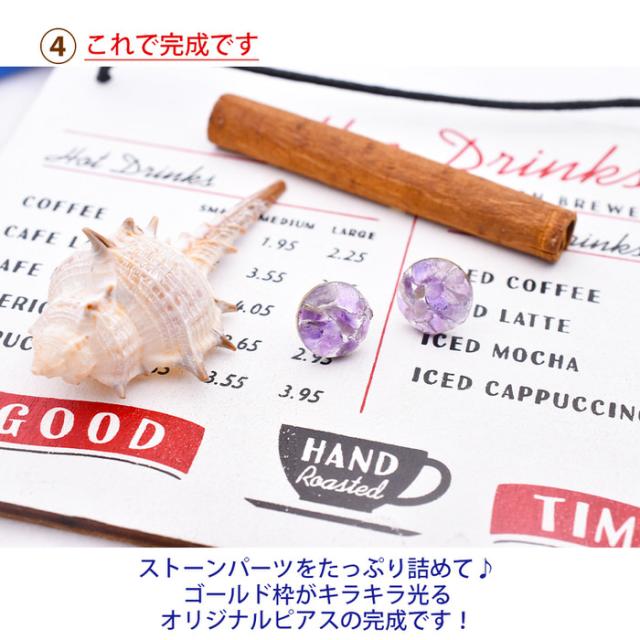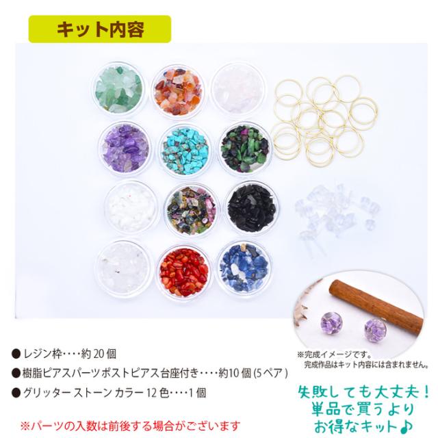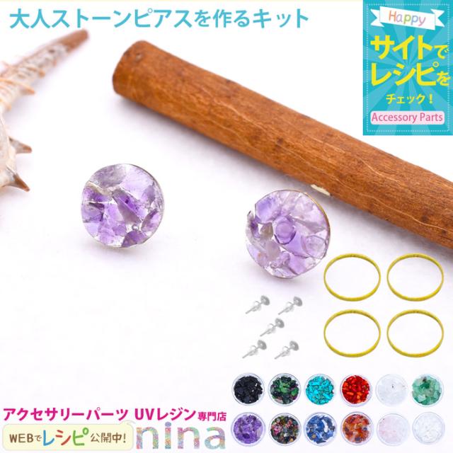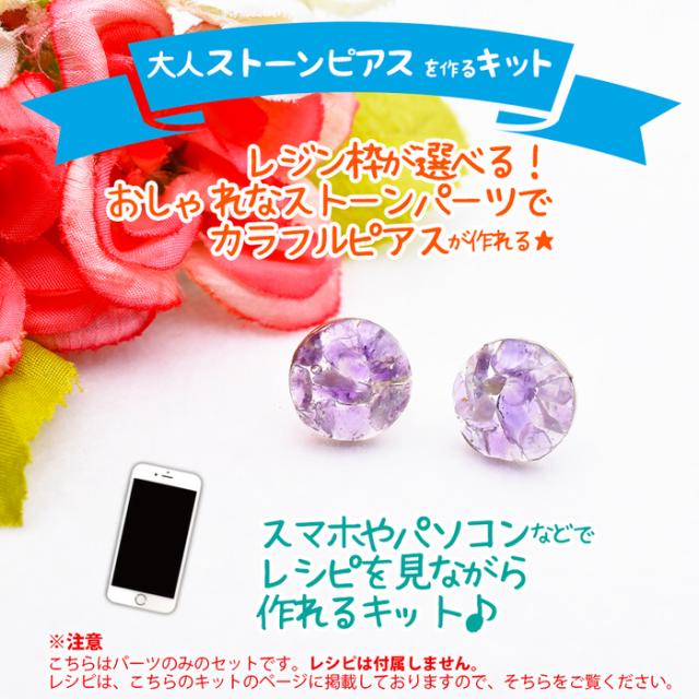 大人ストーンピアスを作るキット | ストーン レジン枠 円型 樹脂ピアス カラー 手作り ハンドメイド UVレジン ピアス おしゃれ かわいい 簡単 デザイン 手芸 レジン