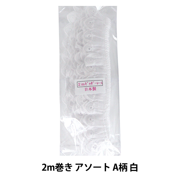 レースリボンテープ 『綿ギャザーレース 2m巻き アソート A柄 白 CF2A』