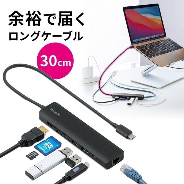 ⇒ご購入の前にご確認下さいパソコンにUSB Type-Cケーブルを1本つなぐだけで各種端子を追加できる。HDMI出力(4K/60Hz)やmicroSD/SDカードリーダー、LANポートなどを搭載したUSB Type-Cドッキングステーション。Surfaceなどの2in1 PCでの使用や、MacBookシリーズをクラムシェルモードで利用する際に接続しやすい長さ30cmのケーブルを装備。【WEB限定商品】