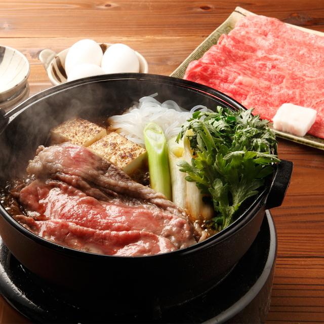(1)鉄鍋を中火で温め、割り下を1cmほどの深さになるように入れて煮立たせます。(2)(1)に牛肉を入れて両面返しながら煮て、出来上がったら食べ始め、残った煮汁に野菜等を入れます。(3)(2)に牛肉をさらにいれて煮立たせ、煮汁が足りない場合は割り下等を補充します。