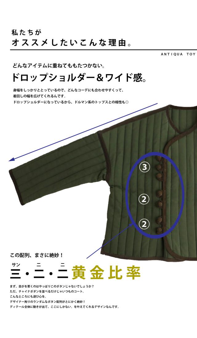 【検索ワード】キルティングジャケット キッズ 子供服 ジュニア ジャケット 長袖 アウター キルティング 前開き 羽織り シンプル ドロップショルダー チャイナジャケット コート チャイナボタン ゆったり 短め 低学年 高学年 中学生 中高生 120cm 130cm 140cm 双子コーデ プレゼント お祝い 出産祝い 秋 冬 キッズ 男の子 女の子 ガール ガールズ 通学 お出かけ お洒落 アンティカ antiqua おしゃれ 可愛い かっこいい