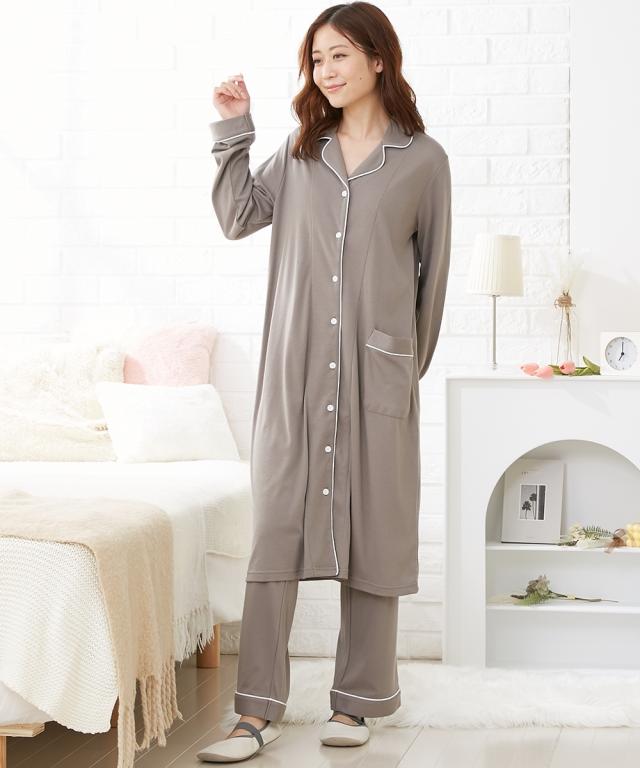 【産前・産後 授乳服】カットソー素材で着心地ラク! 綿混スムース前開きマタニティパジャマ