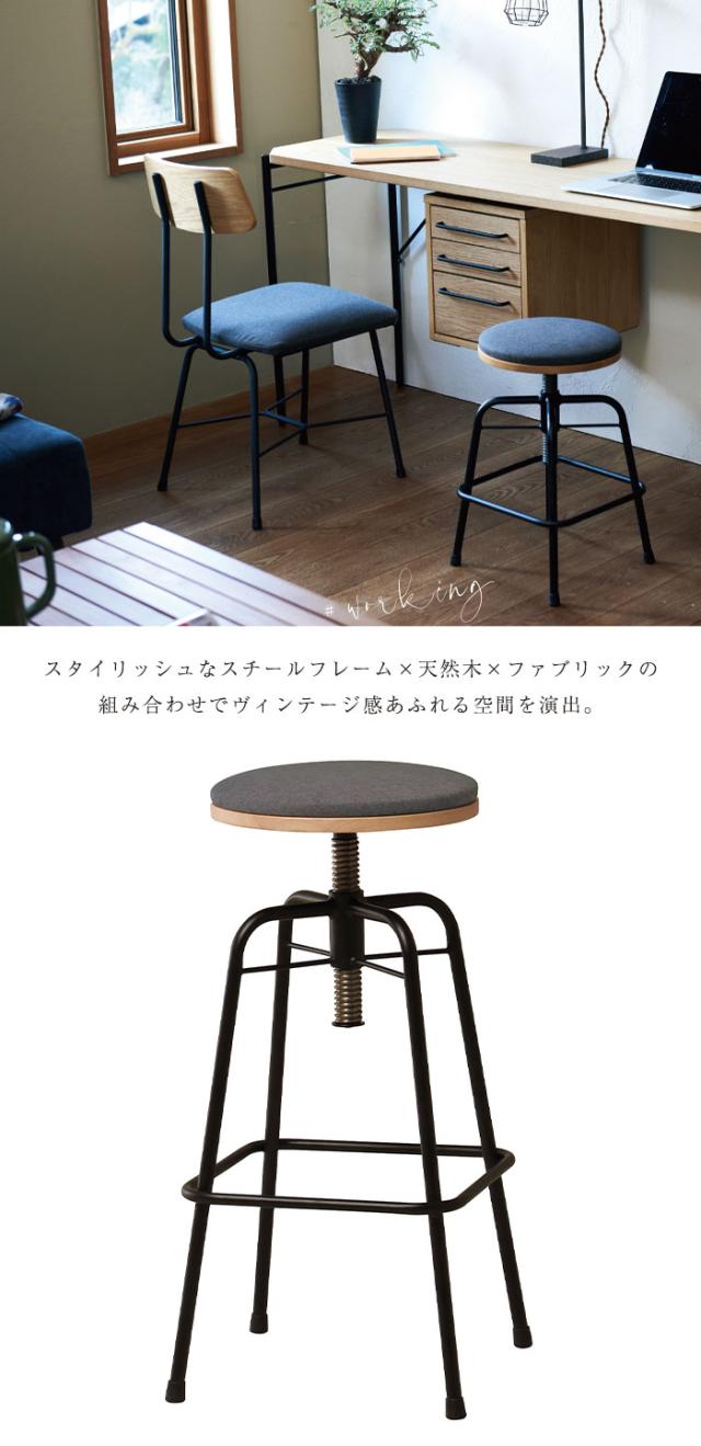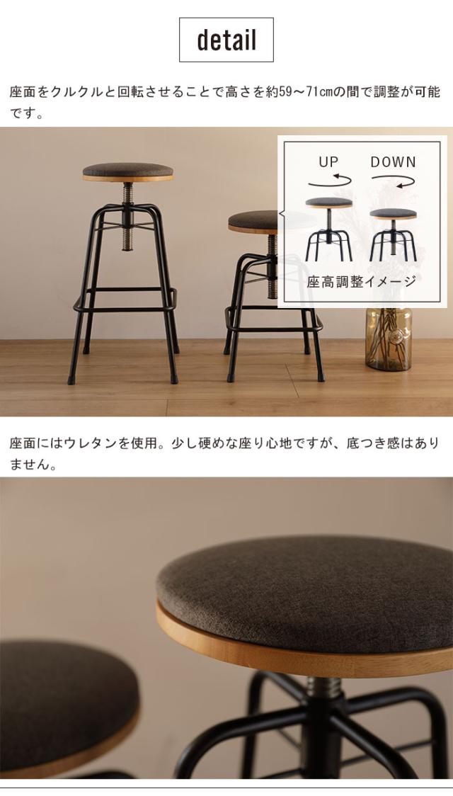 スツール ロースツール ロータイプ 幅44 高さ59-71 コンパクト 1人掛け 丸椅子 ファブリック ファブリックチェア スチール チェア