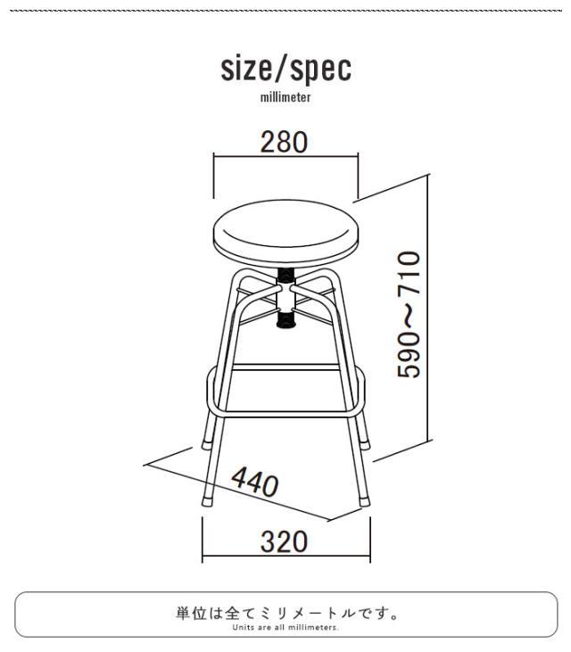 座面を回転させることで59〜71cmで高さ調節可能です。