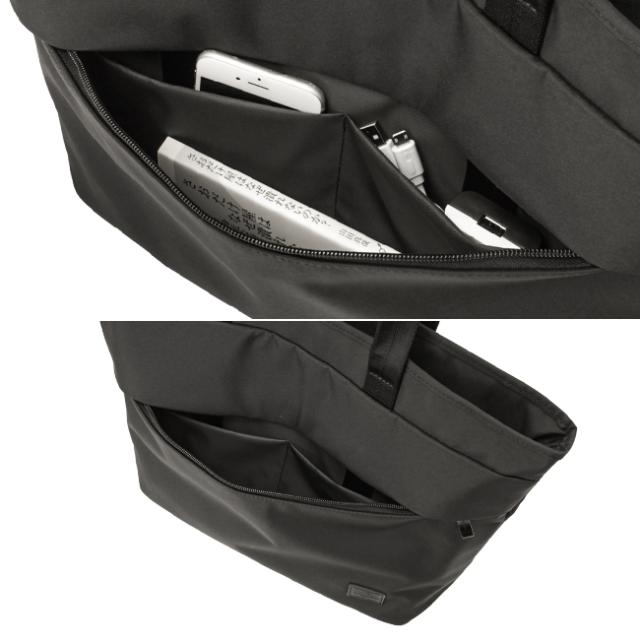 本体フロントにはアクセス性の高いインポケット内蔵ファスナーポケットを配置。