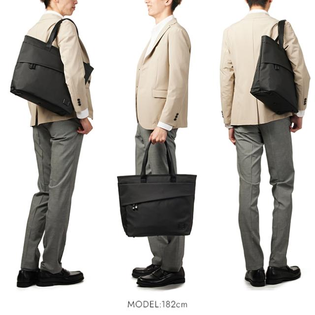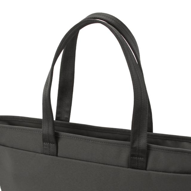 | PORTER / PORTER VIEW TOTE BAG(S) 光沢を抑えたマットな質感のナイロンポリエステルツイル生地を使用し、カジュアルなスタイルで仕事をする大人の方をターゲットにしたシリーズです。 シンプルなルックスながらも高い機能性を備えており、ポーチを除く全型にノートPCやタブレット端末を収納できるクッション材入りのポケットを配しています。また、全てのPC収納部とデイパックのショルダーストラップのパッド部分には、クッション性のある厚手のポリエステルニット素材を用い、その他の内装は視認性を高めるグレーの生地を使用しています。上質で大人っぽさのある雰囲気にこだわり、外装は極力ステッチを控え、すっきりとシンプルに仕立てました。 本体生地は、柔らかくしなやかで、染色性に優れた強力ナイロン糸をタテ糸にし、ヨコ糸に原料の段階から着色した黒のポリエステル原着糸を使用した交織のツイル生地を使用しています。艶の出るナイロンと、マットな黒のポリエステル原着糸の2種類の糸を使用しているため、染色した際、グレーとネイビーはタテ糸とヨコ糸の濃淡が出て、単調でない深みのある色に染まっています。裏面はPVC加工を施すことで水に強く、さらにPVCの適度な張りを活かし、余分な芯材を省くことでカバン本体を軽量に仕上げました。 トートバッグ2型は、内装にペットボトルや折り畳み傘を収納できるポケットを設けています。背面にはキャリーバー通しを設けており、キャリーケースとのセットアップが可能です。 |