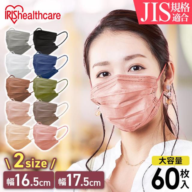 マスク 不織布 カラーマスク 血色マスク プリーツ ふつうサイズ 不織布 60枚入 APN-60LW 血色カラーマスク アイリスオーヤマ メール便 ゆうパケット プリーツ 風邪 花粉 飛沫 ウイルス ほこり 埃 送料無料