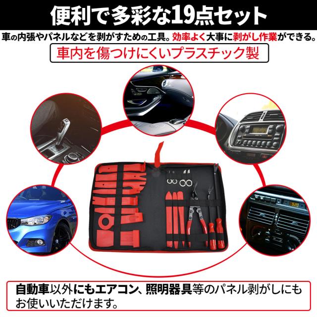 パネルはがし 車内装はがし 19点セット ツール 車用 内張り 剥がし リップ クランプツール 内装 ハンディ プラスチック製 脱着工具 車