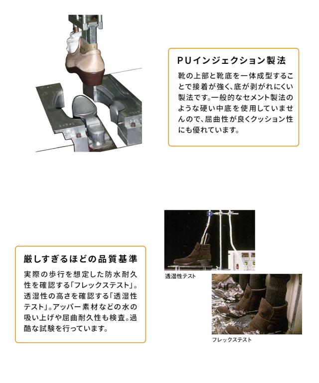 上部と靴底を一体成型することで接着が強く、底が剥がれにくい製法です。