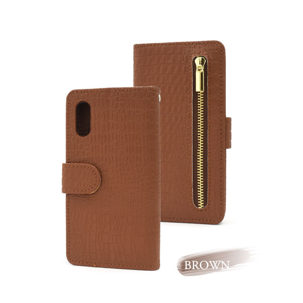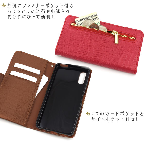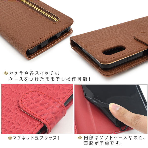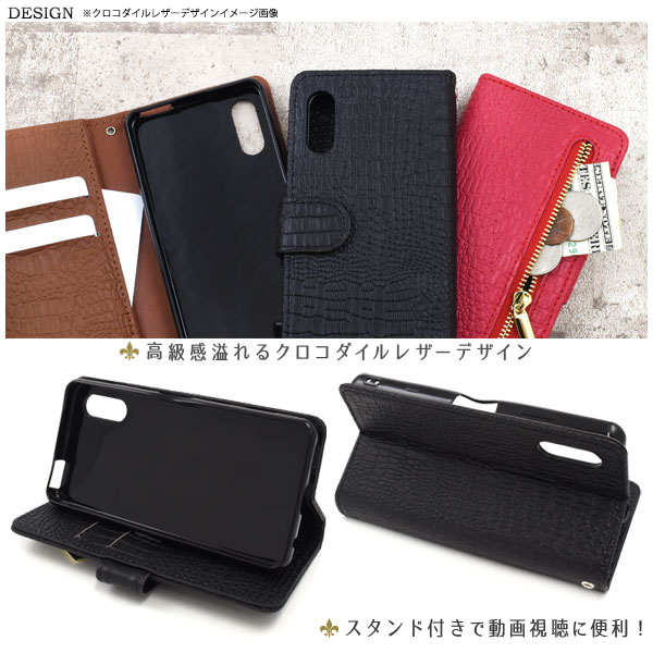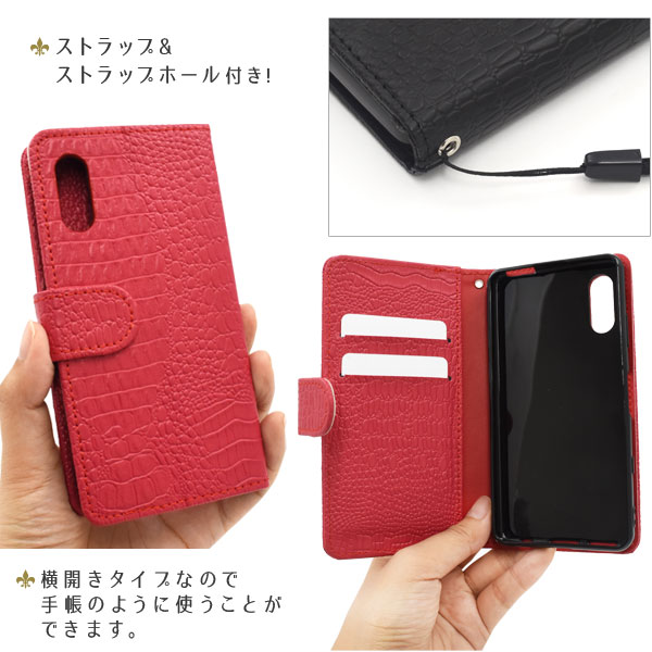 スマホケース Xperia Ace II SO-41B用 手帳型 クロコダイル レザーデザイン スマホカバー 上品 オシャレ 携帯ケース エレガント 装着簡単 コンサバ お洒落 おしゃれ ワニ柄 ストラップホール付き スマートフォンケース クロコダイルケース 大人っぽい 携帯カバー docomo