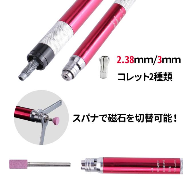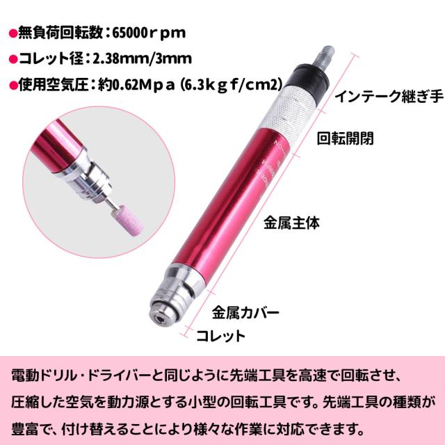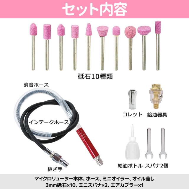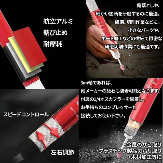 3mm シャンク 小型グラインダー 砥石付き エアー エア マイクロ ミニ リューター キット 切削 研磨 作業 無段階調整 工具 電動工具 電 磨く エアツール 研磨器 回転工具 作業効率 UP
