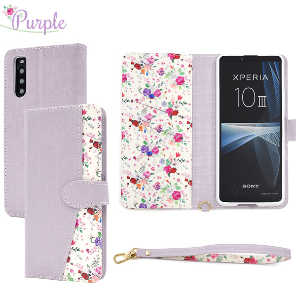 スマホケース Xperia 10 III SO-52B SOG04 手帳型 花柄 ハッピーブーケ 花模様 お花 オシャレ かわいい 装着簡単 携帯ケース フェミニン 上品 可愛い 小花 華やか エレガント フラワー お洒落 スマホカバー スマートフォンケース おしゃれ オシャレ auスマホ ケータイケース