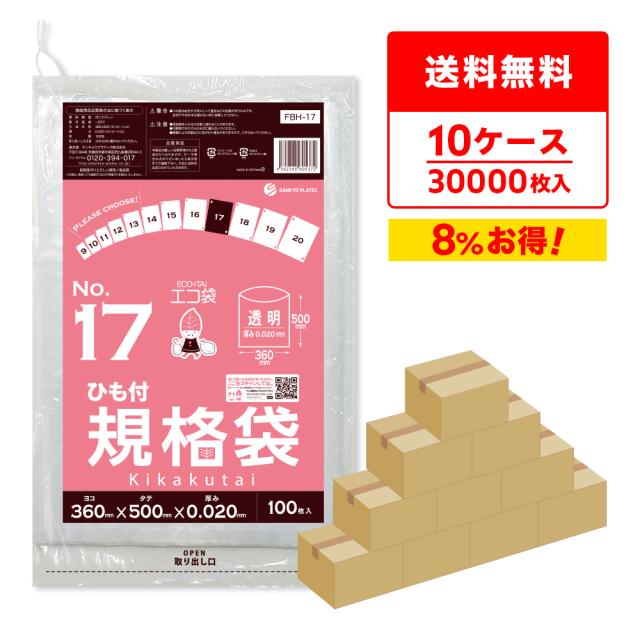 【まとめて10ケース】FBH-17-10 ひも付規格袋 17号 0.020mm厚 透明 100枚x30冊x10箱 食品衛生法 RoHS指定 送料無料