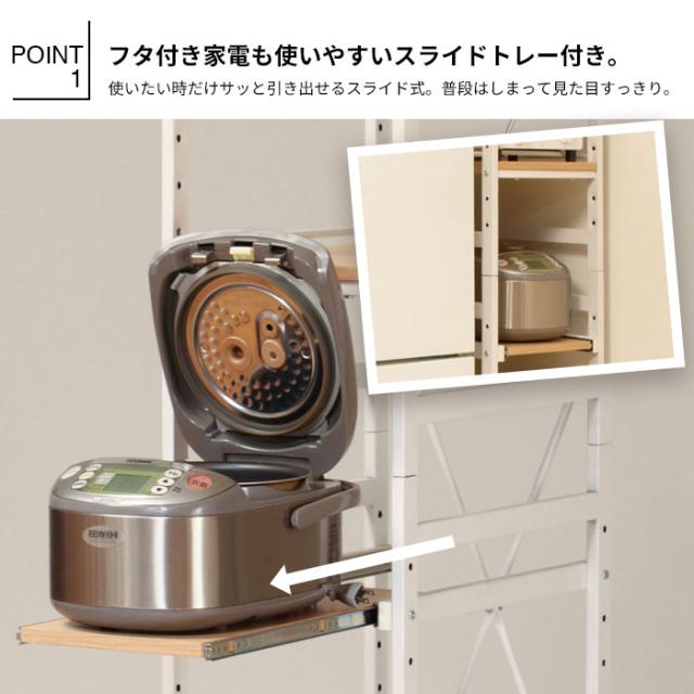 棚板1枚はスライド棚で炊飯ジャーなどの設置に最適。
