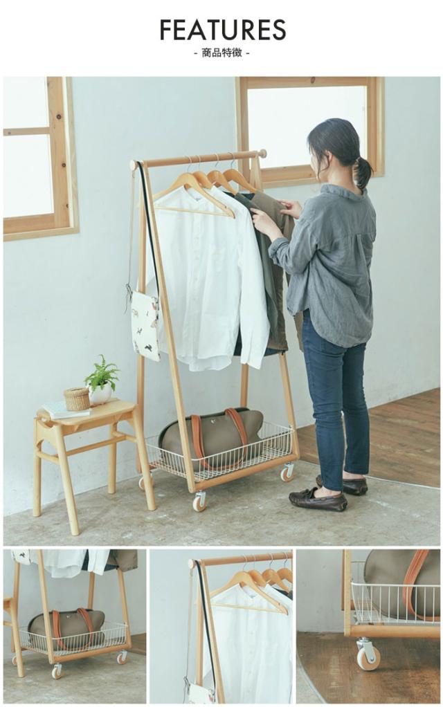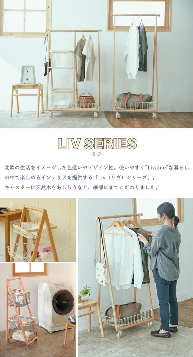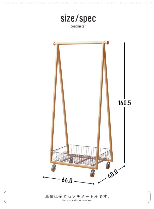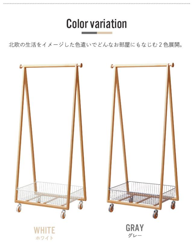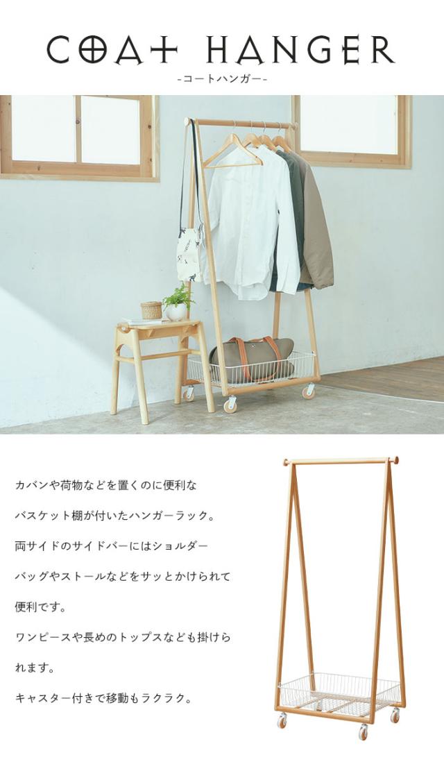 コートハンガー バスケットハンガー ハンガーラック キャスター付き 幅66 高さ141 木製 シンプル スリム おしゃれ 北欧 かわいい