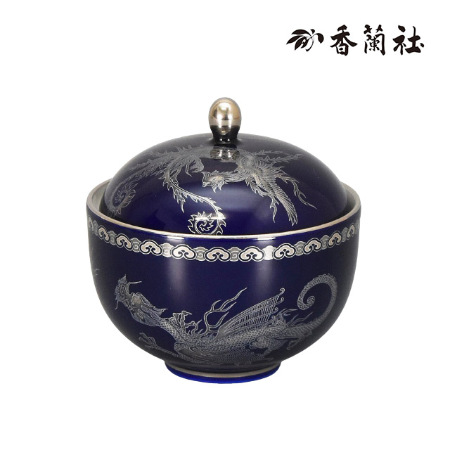 ・香蘭社独自の瑠璃釉に銀彩が映える高級感あふれる仕上がり。