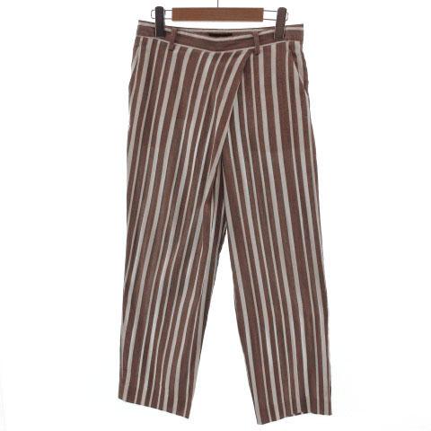 【中古】トゥモローランドコレクション TOMORROWLAND collection パンツ ストライプ サイドジップ エンジ系 白 36