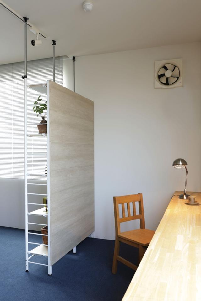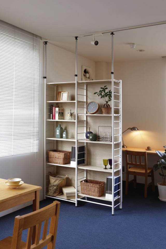 部屋の間仕切りとラックによる収納を兼ね備えたスクリーンラック。