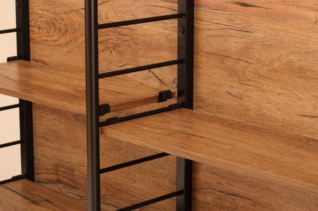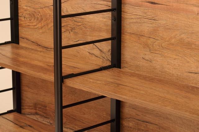 ■材質:フレーム:ス チール(□25mm)、粉体塗装支柱:スチール(Φ22.2mm)、粉体塗装棚板:パーティクルボード(15mm厚)、プリント紙貼り背板:パーティクルボード(15mm厚)、プリント紙貼り