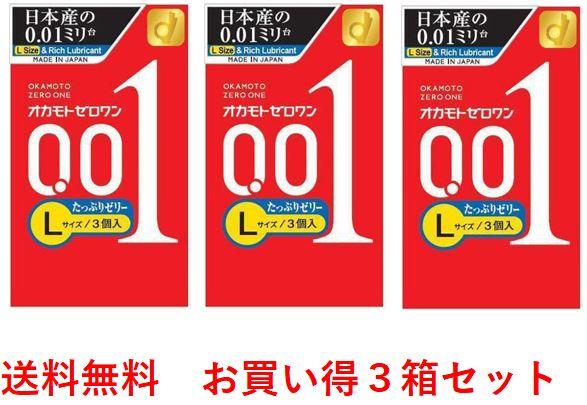 3箱セット送料無料 追跡可能メール便コンドーム オカモト ゼロワンLサイズたっぷりゼリー 0.01ミリ 3個入