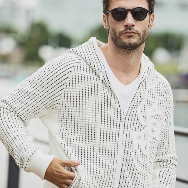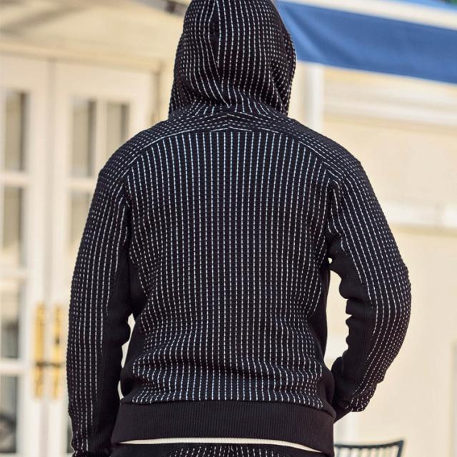 コーディネートに合わせて調整しやすいダブルファスナーや、ドローコードはブランドオリジナルで細かいこだわりが詰まったアイテム。