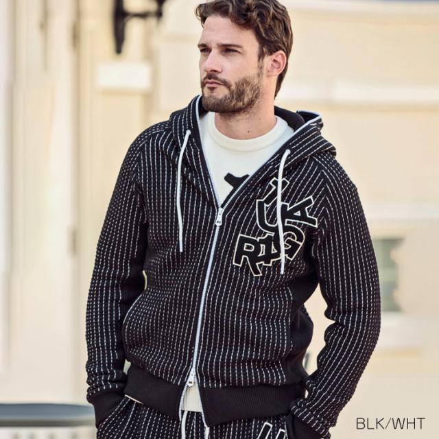 SALE セール 1PIU1UGUALE3 RELAX ウノピゥウノウグァーレトレ ランダムロゴワッフルリブパーカー ジップ フーディー メンズ
