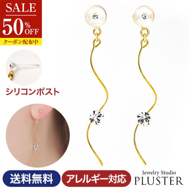 半額 ピアス レディース 18金 アレルギー対応 セカンドピアス シリコン ポスト シリコンポスト バックキャッチ 揺れる ロング キャッチ スタッド 両耳 18k k18 ゴールド 大ぶり シンプル つけっぱなし ジュエリー 送料無料 誕生日 クリスマス プレゼント 女性