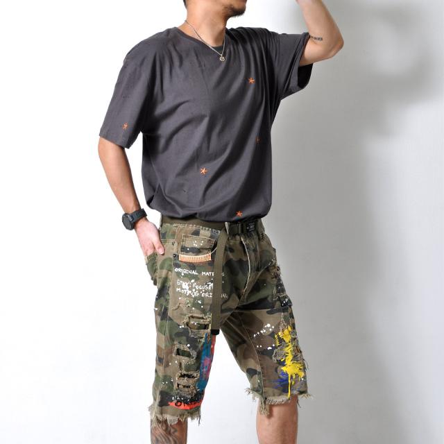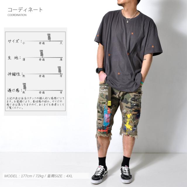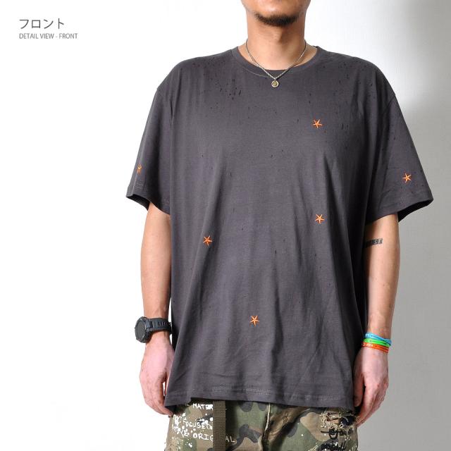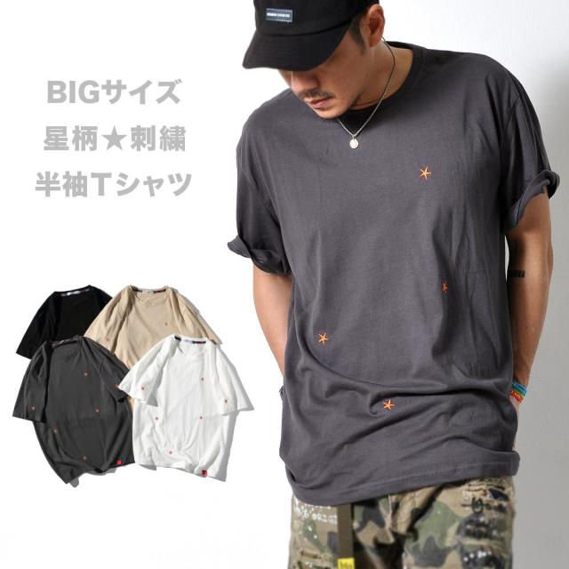 数量限定 星柄 刺繍Tシャツ メンズ 半袖 BIGシルエット ゆったり 大きめ スター #TA181 M便 BL
