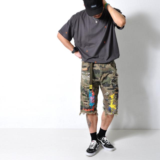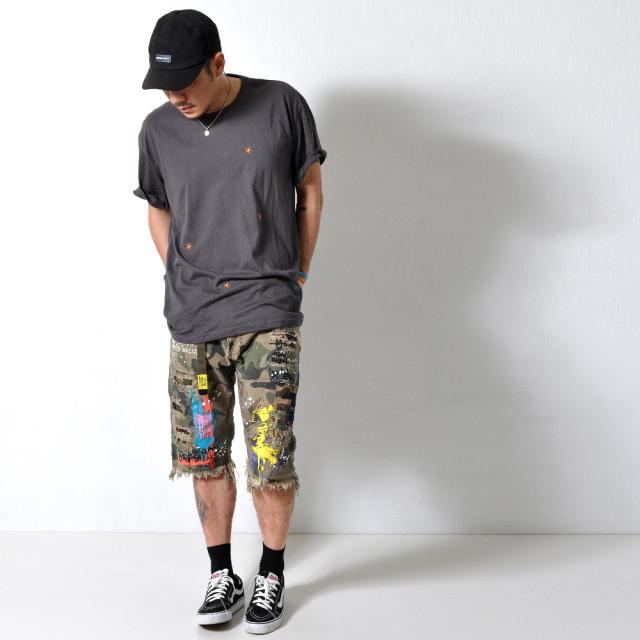 ★刺繍された星が散りばめられた半袖Tシャツ★