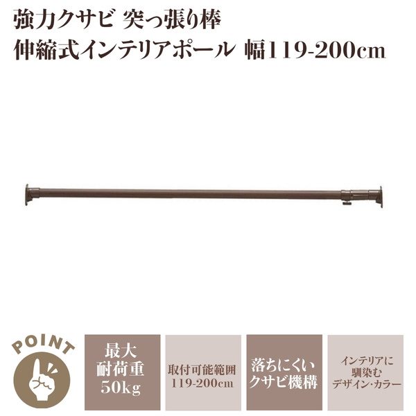 突っ張り棒 つっぱり棒 伸縮 クサビ機構 超強力 幅119-200cm ウッディ 収納 カーテン