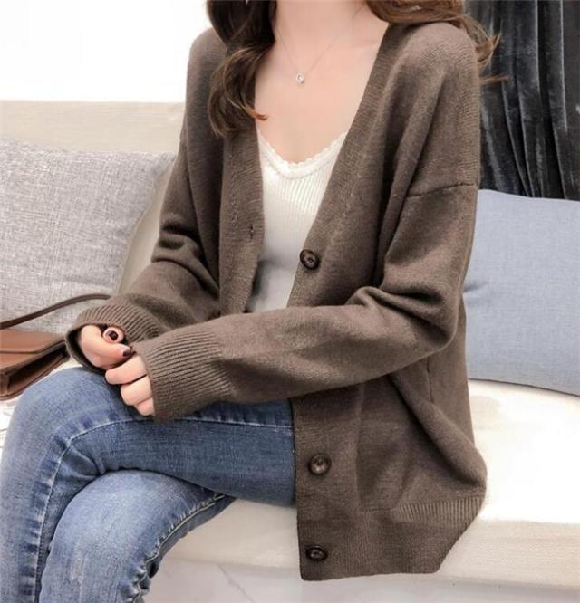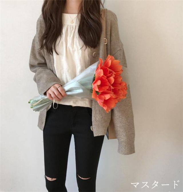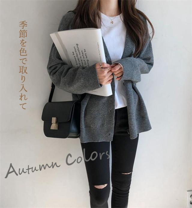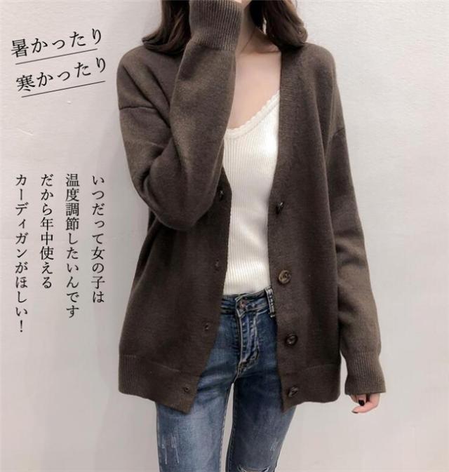 カーディガン レディース セーター カーディガン ミディアム丈 カーデ 綿 ニット コットン トップス セーター Vネック 長袖 羽織り 秋 コットンニット Vネックカーディガン ゆったり