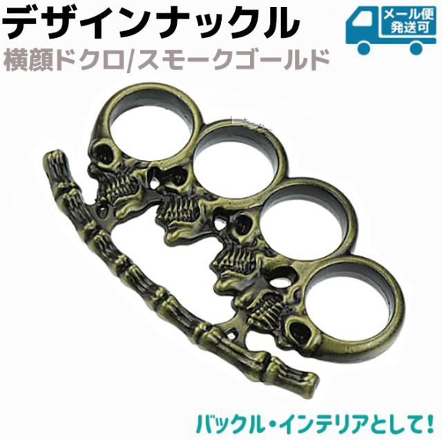 デザインナックル 横顔ドクロ スモークゴールド PRFSKLKNU01 ベルト バックル アクセサリー キーホルダー メリケンサック 本物 おしゃれ かっこいい アクセ メリケンサック本物 護身 メール便発送可 ポイント消化