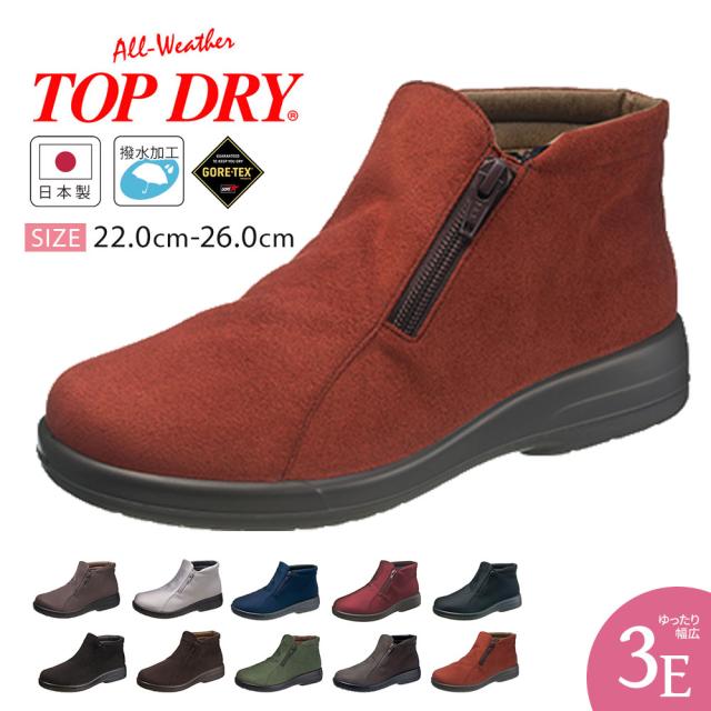 ショートブーツ 防水 レディース 防滑 撥水 幅広 3E ゴアテックス 通気性 履きやすい 痛くない 蒸れにくい 滑りにくい 靴 シューズ 通勤 通学 雨 雪 黒 ブラック ブラウン 赤 グレー ネイビー TOP DRY トップドライ TDY3912A