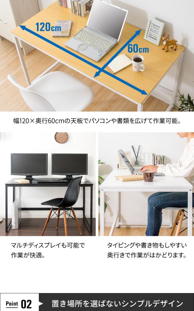 パソコンデスク PCデスク 幅120cm PCDES-120 テレワーク 送料無料 シンプル PC 机 テーブル スチール 周辺機器 勉強机 ブラック ブラウン ホワイト ナチュラル