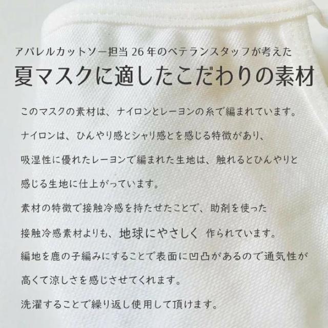接触冷感、UVカット、通気性を備えた洗えるマスクです。