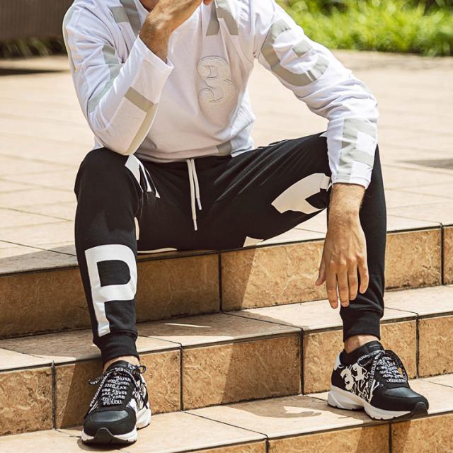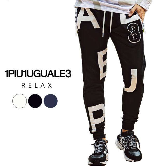1PIU1UGUALE3 RELAX(ウノピゥウノウグァーレトレ)ビッグファスナーランダムロゴジョガーパンツ
