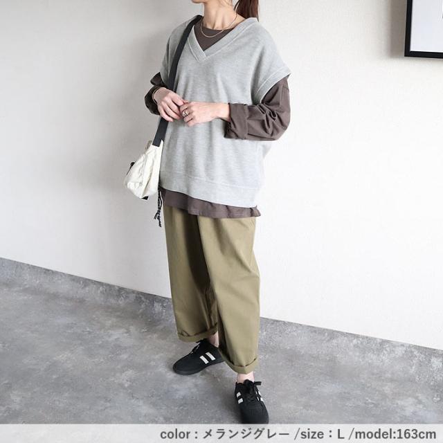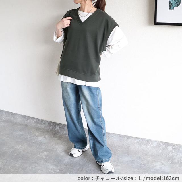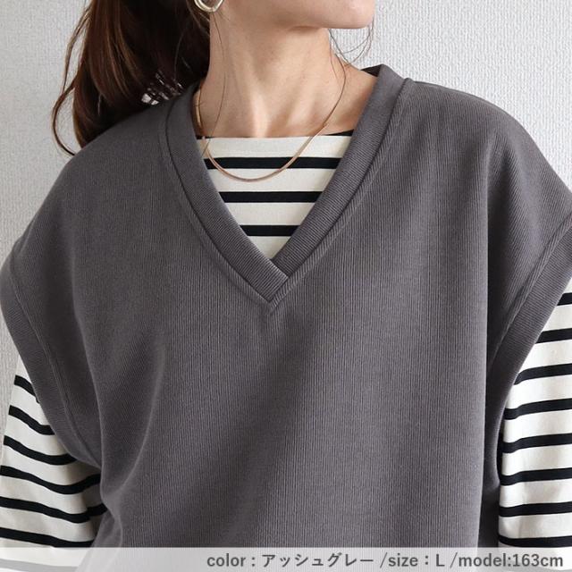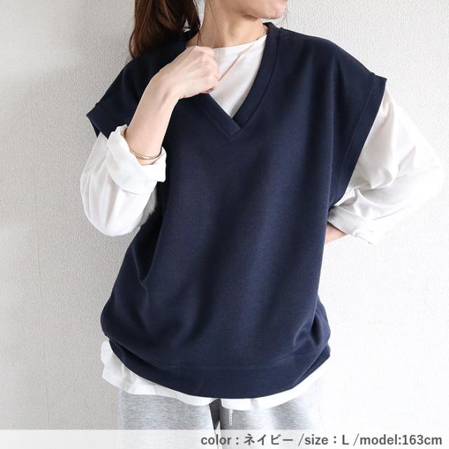 ベスト レディース スウェット Vネック ニット おしゃれ 重ね着 オーバーサイズ 体型カバー レイヤード ビッグシルエット 黒 白 韓国 かわいい 無地 綿混 コットン混 春 秋 シンプル カジュアル 40代 30代 50代 60代 大きいサイズ ゆったり 大人 カジュアル かわいい SALE セール uricca ウリッカ うりっか