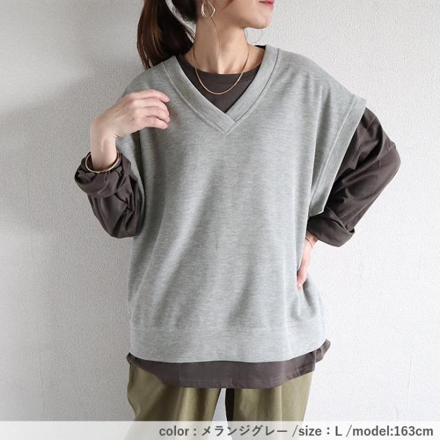春新作 ベスト レディース Vネック スウェット ゆったり 大きいサイズ [郵3]^t866^ ★