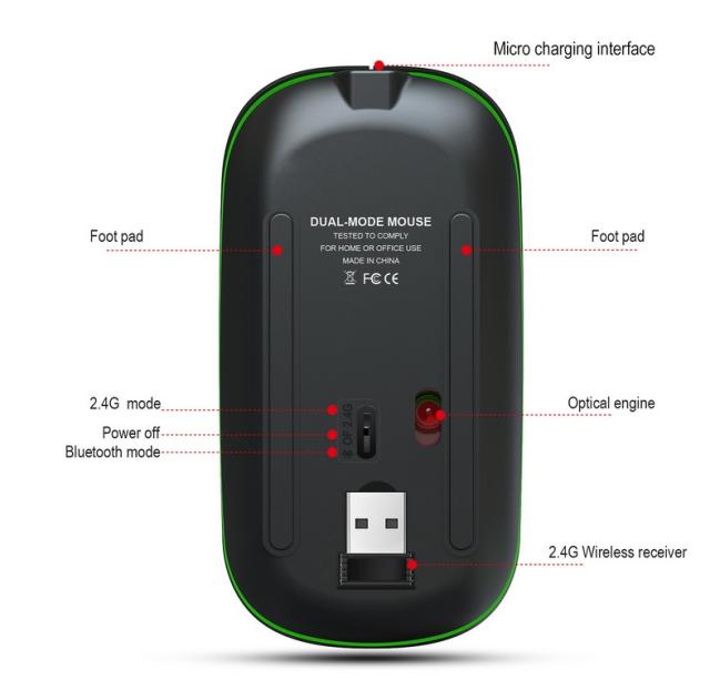 パッキングリスト:1 *デュアルマウス(デュアルモード:Bluetooth + 2.4 Gワイヤレス)、1 * USBレシーバー、1 * USB充電ケーブル(25cm)、1 *英語マニュアル;