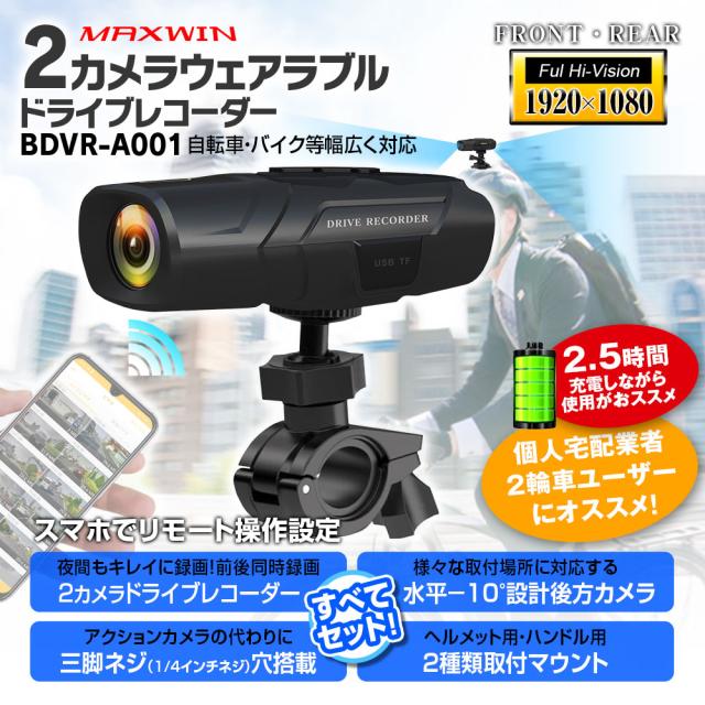 ドライブレコーダー 2カメラ 前後同時 バイク用 ヘルメット装着 バイク 自転車 WiFi 200万画素 フルHD LED信号対応 IPX4 常時 ループ録画 MAXWIN