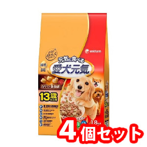 【今ならミズノの靴下1足をプレゼント】4個セットユニ・チャーム 愛犬元気13歳以上用ささみ・ビーフ・緑黄色野菜・小魚入り1.8kg 4520699657126 ※メーカー都合によりパッケージ、デザインが変更となる場合がございます