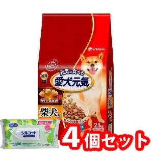 【今ならシルコットウェットプレゼント】4個セット ユニ・チャーム 愛犬元気 柴犬用ビーフ・緑黄色野菜・小魚入り2.1kg 4520699693032