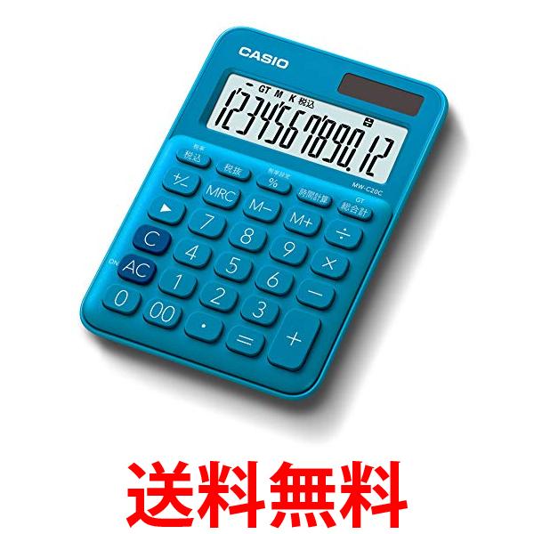 2個セット カシオ MW-C20C-BU-N レイクブルー 12桁カラフル電卓 ミニジャストタイプ 送料無料