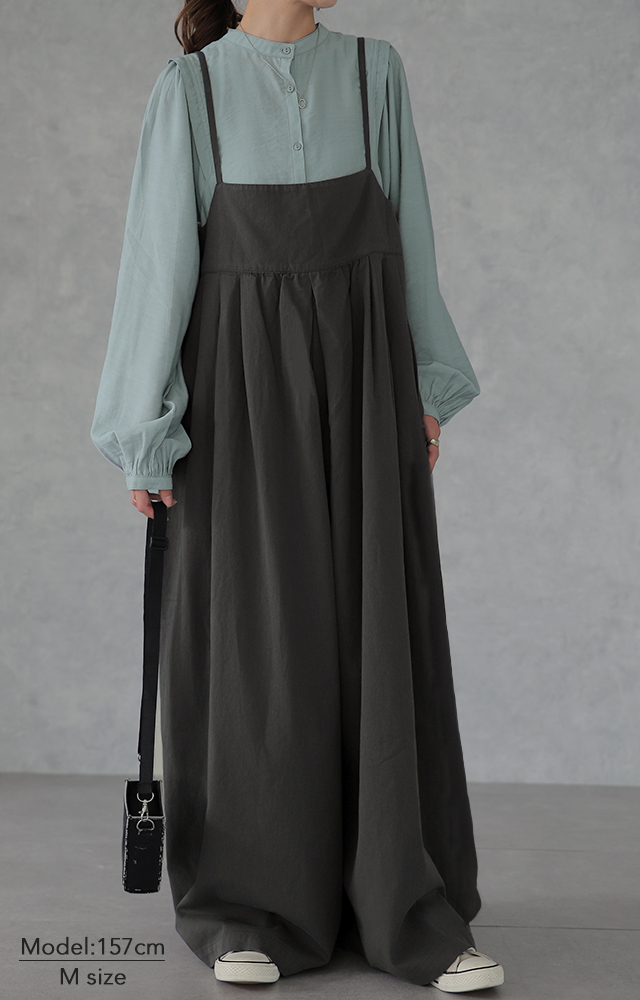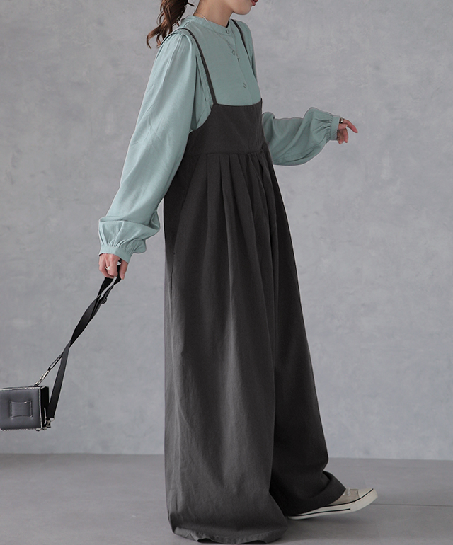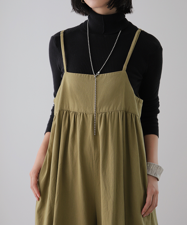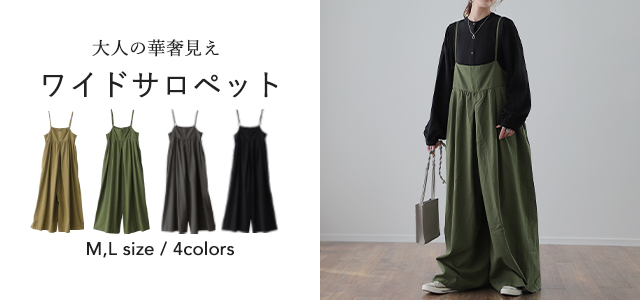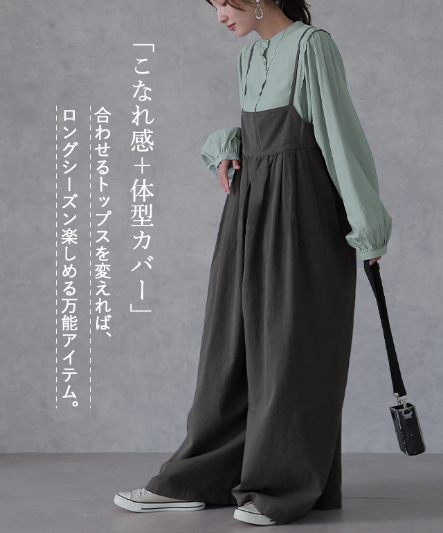 いつものトップスに合わせるだけで簡単にコーデが完成するワイドサロペット。