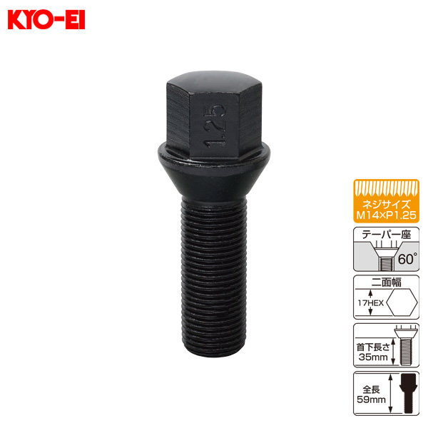 KYO-EI ラグボルト 輸入車用 1個 M14×P1.25 ブラック 60°テーパー座 17HEX 59mm 首下35mm 305B-17-35